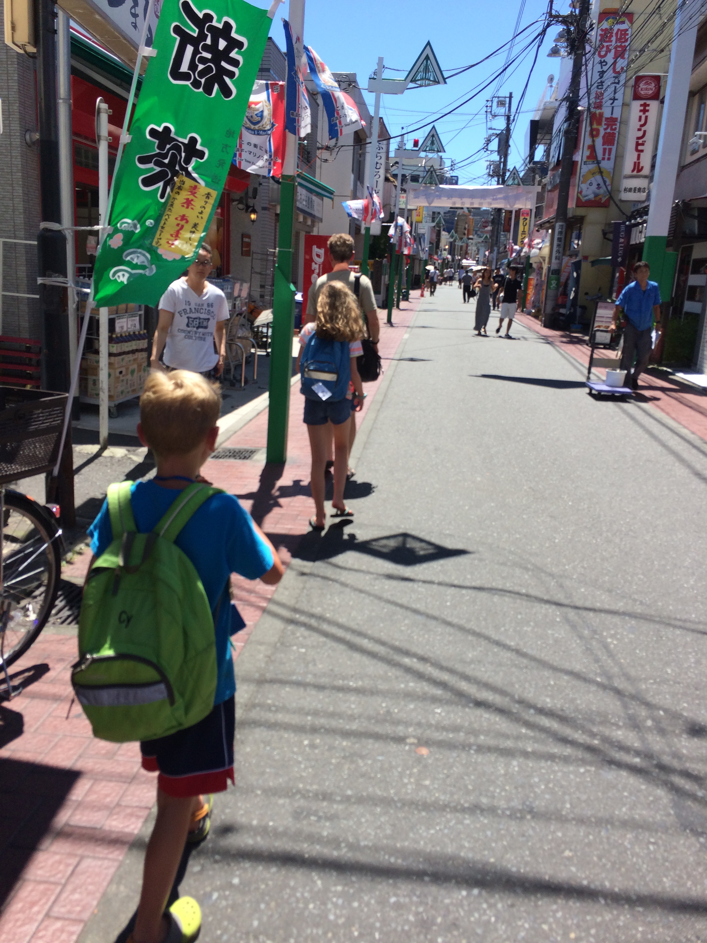 What we have seen and done so far: visited Ruby at the kennel every day; checked out the Akihabara neighborhood of Tokyo, famous for its manga and anime stores; eaten at ramen and conveyor belt/sushi-go-round restaurants; ridden the train, a lot; splashed in the pool at the inn; checked out a potential house to rent for the next few years; and shopped at a 100 yen store. What’s to come: visiting the kids’ school, checking out a water park, and seeing the giant/famous Buddha in Kamakura.
