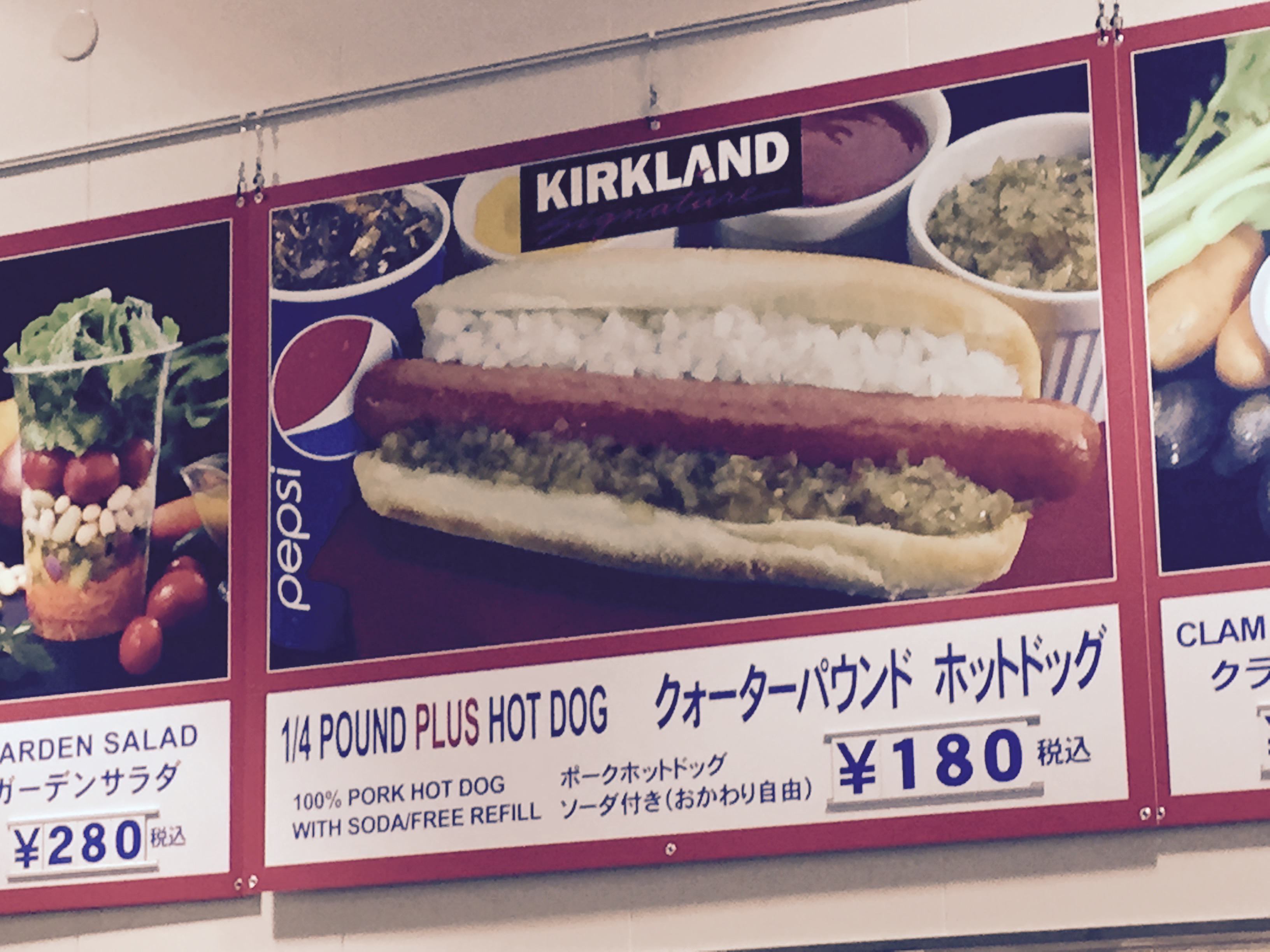 A successful Costco trip means one thing: lunch at the snack bar! You will all be relieved to hear that the foot-long hot dog holds court at the snack bar, just like at home. And a steal at 180 yen ($1.50)!