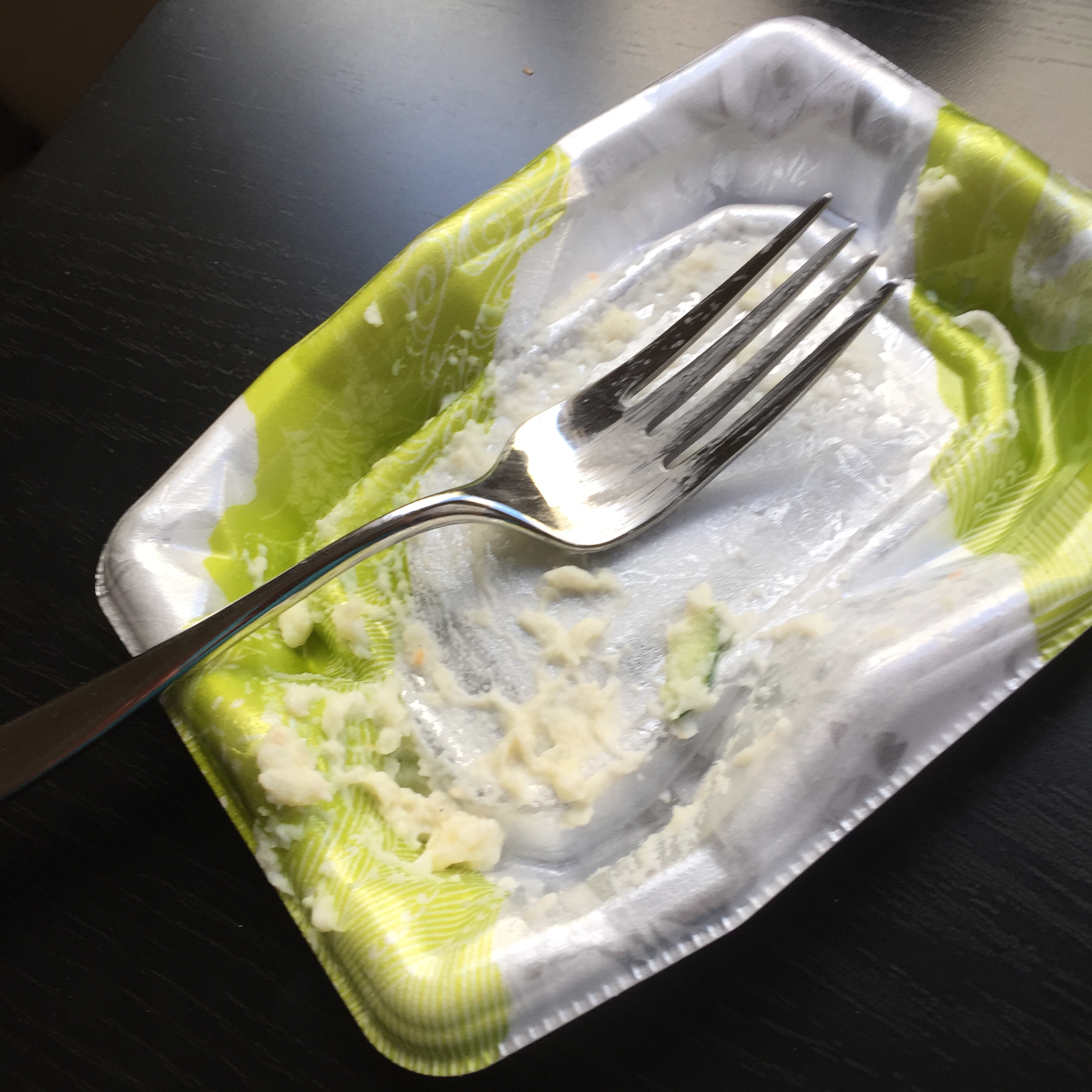 Any time I pass near a prepared foods section of a grocery store, I always end up buying a small portion of potato salad. I used to buy some only when I was actually shopping for prepared foods, but I’ve given up practicing any restraint and get it pretty much every time I see it. Which is often. Which means that I eat a lot–and I mean a lot–of potato salad.