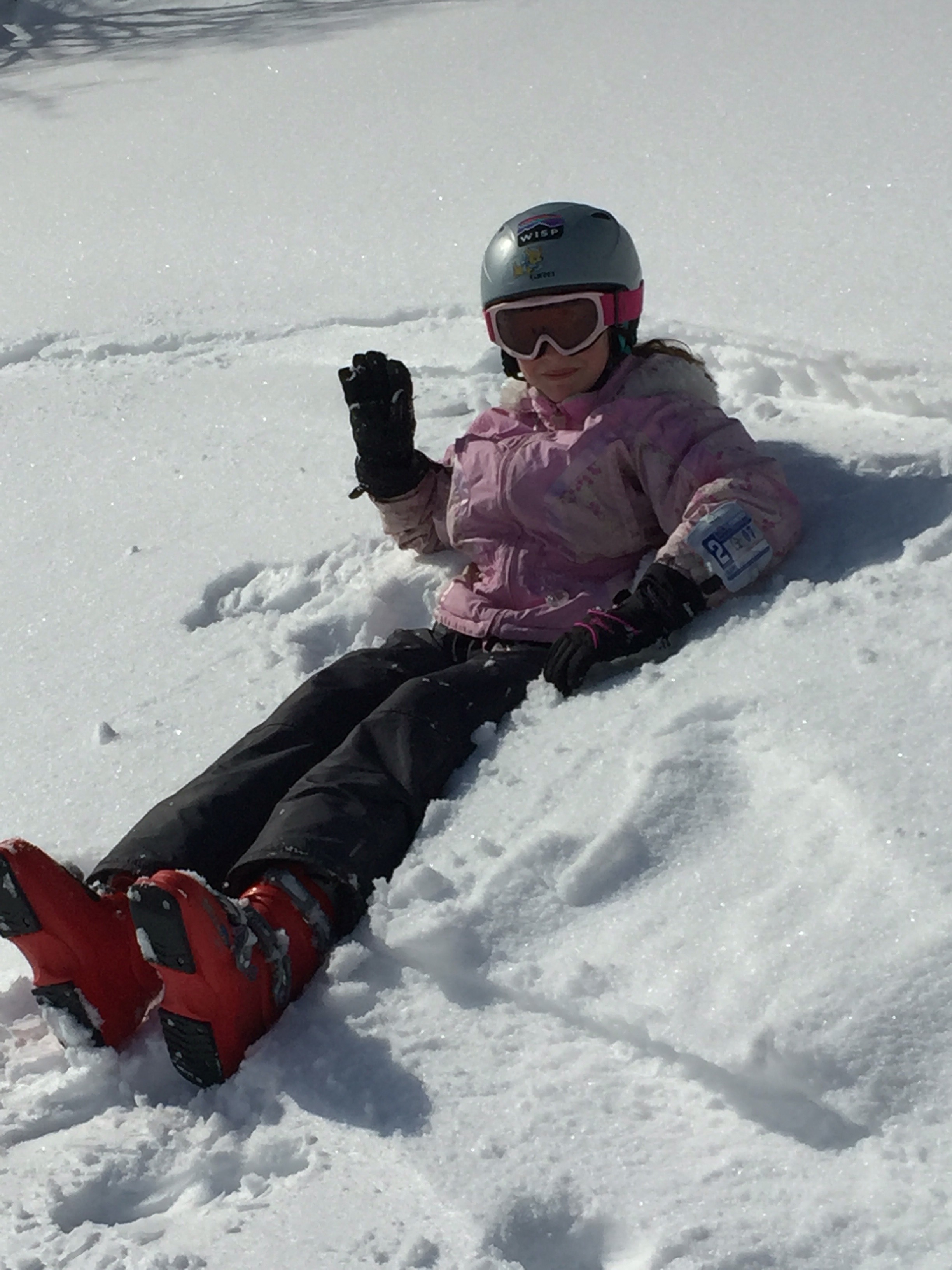 Several times throughout the day we plopped down in the snow and just relaxed for about 10-15 minutes. The first time Tessa landed she said, “It’s like a throne!”. I called her Queen Tessa, and she immediately did a queen wave and said, “What’s up, my snow people?”. She cracks me up.