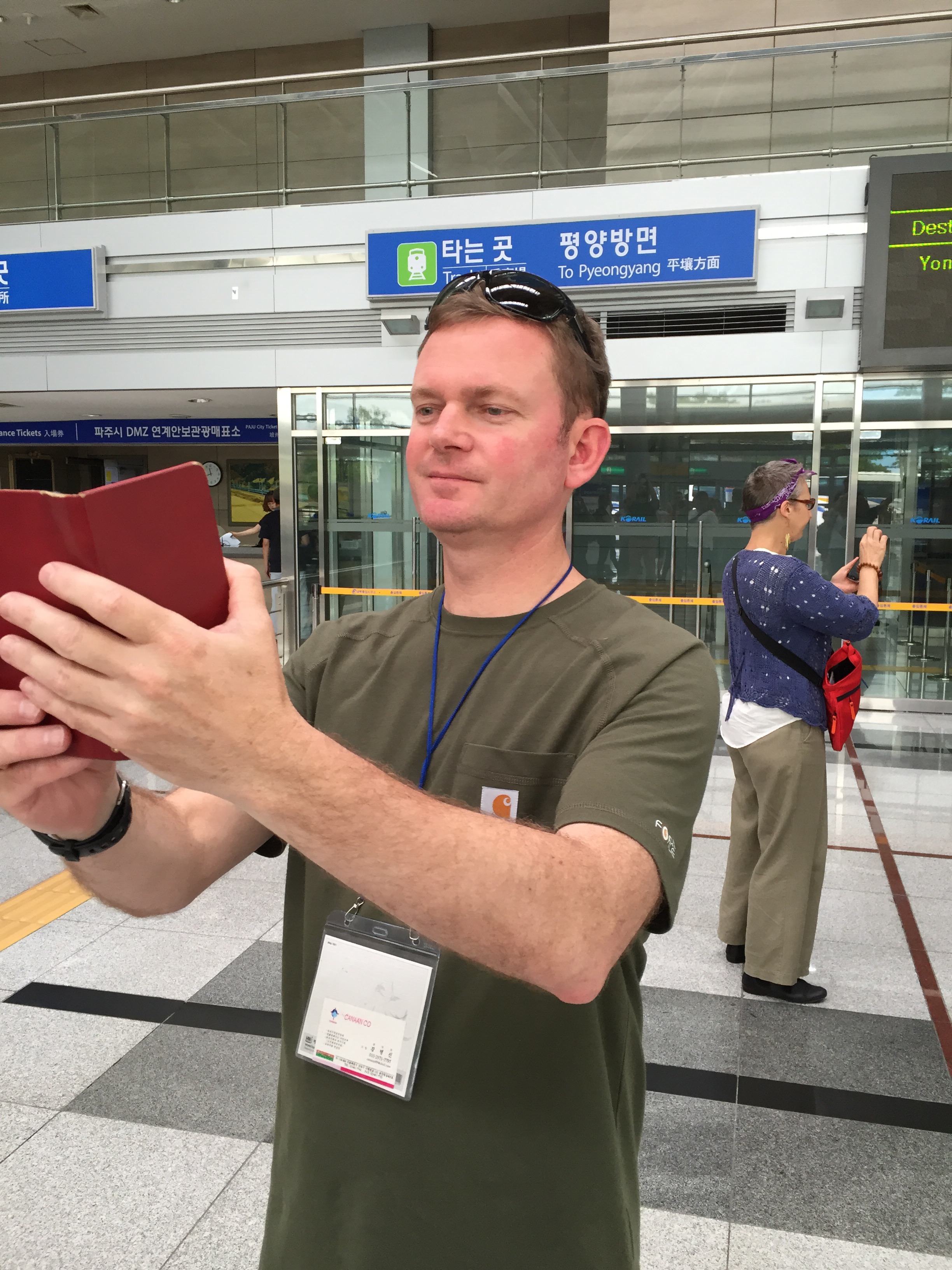 The somber environment–and tons of barbed wire–along the drive to the DMZ gave way to lines of buses, mobs of tourists, and oddly cheerful souvenir stands and snack shops once we arrived. It was just so…odd. Mark described our standing there as more dangerous than a volcano that’s about to blow, and here we stand gaping at the North and buying tacky DMZ souvenirs.
