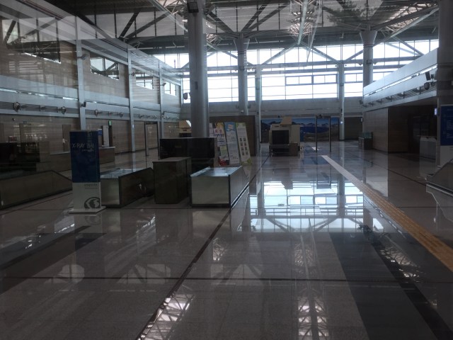 After Dorasan Observatory we headed to Dorasan station, a train station opened to cross border train traffic in 2007. Raw materials went from the South to the Kaesong Industrial Region in the North; finished goods then returned South. The arrangement lasted less than a year when the North called it off in 2008. The station remains in use with a handful of trains per day ferrying tourists back and forth to Seoul. The customs and immigration areas sit empty, and the To Peonguang sign leads to blocked tracks.