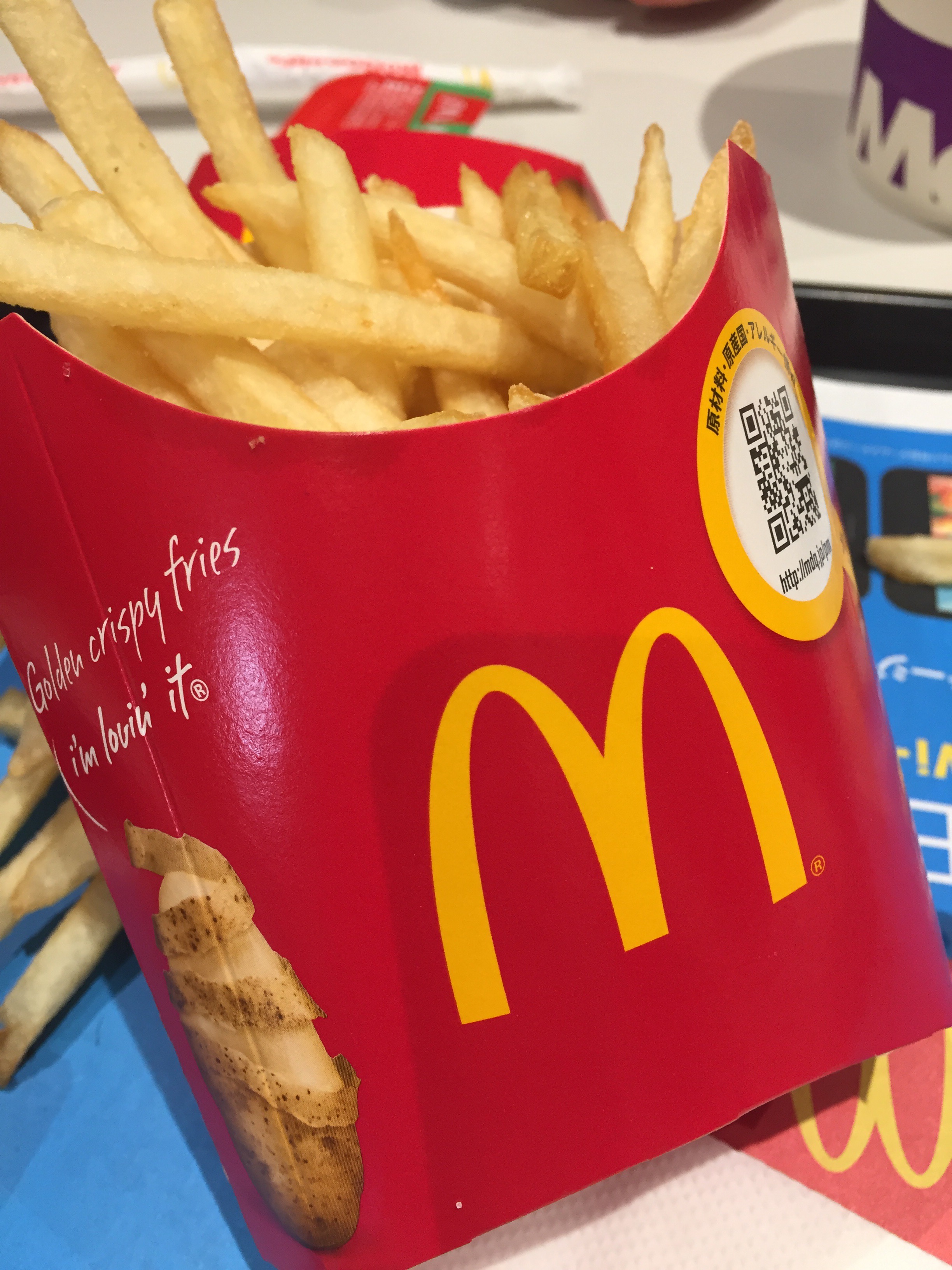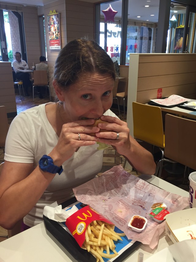 In previous installments we tried Doritos and Oreos; today we find ourselves in Okinawa on vacation and humoring the older child, who celebrated a birthday yesterday. “I want McDonalds for lunch!” she declared. So off to the Golden Arches we went.