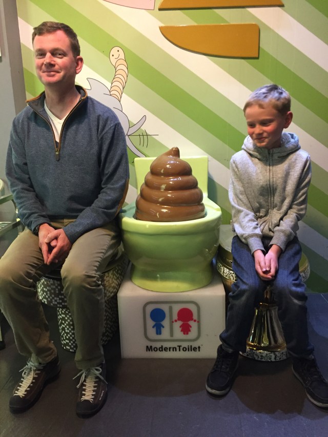 Dessert? A swirl of “poop” ice cream in a urinal dish. The kids started digging through the ice cream and announced what they found: Hey, it’s corn! And we shut down those jokes quick.