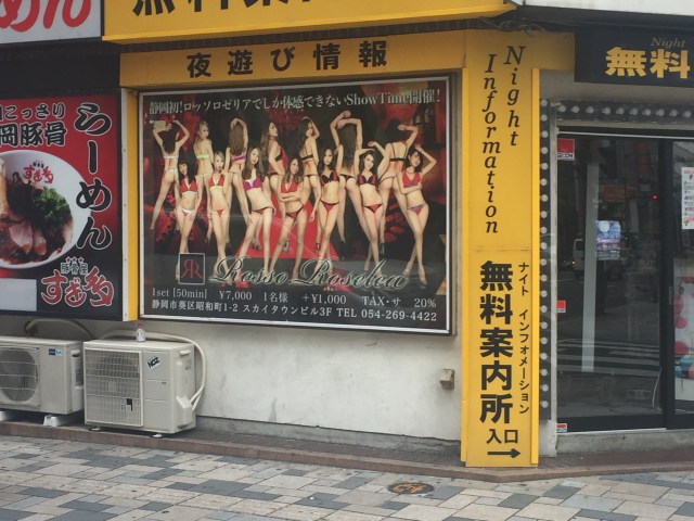 After leaving the tea museum we headed back to Shizuoka to grab some lunch and wait for the car. Somehow we found ourselves in a highly questionable neighborhood that featured lots of gentlemen’s clubs, bars, and a mind boggling number of karaoke joints. Everything was shuttered, opening late afternoon. Thanks to the magic of The Google we quickly found our way out of there and back to a respectable lunch place.