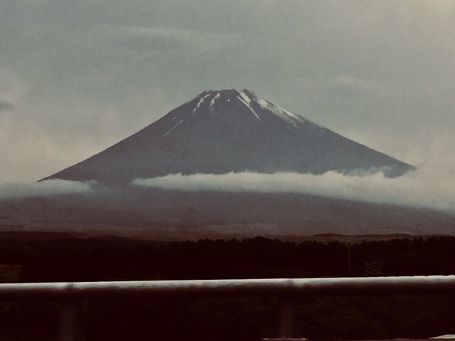 We hoped that the heavy cloud cover from this morning had lightened up enough to give a Mount Fuji sendoff on our drive home. And we got it!