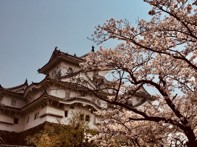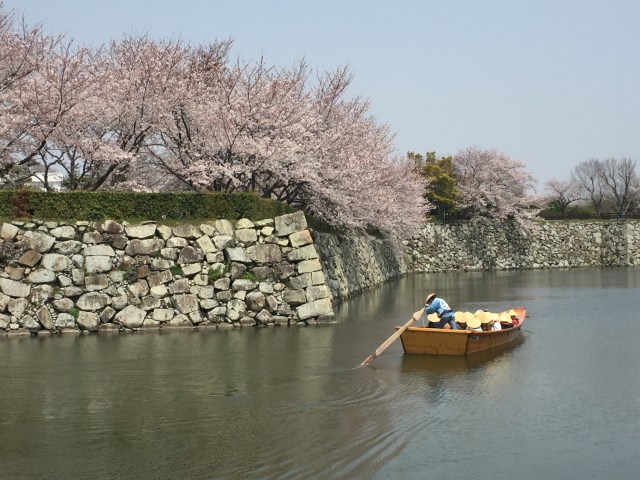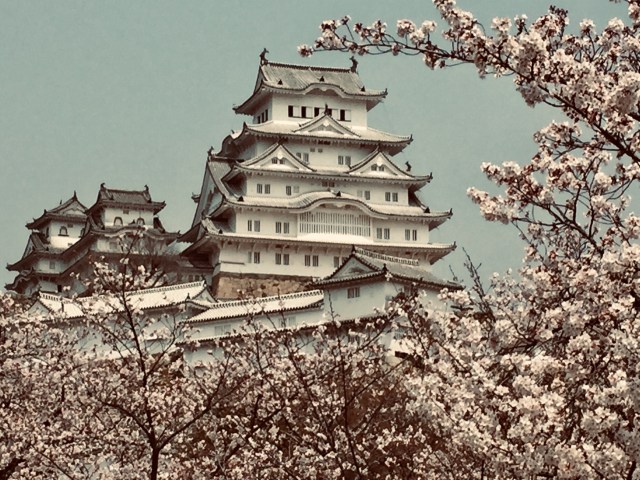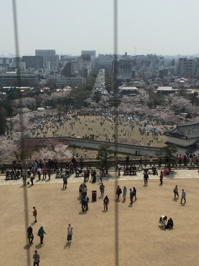 We arrived in Himeji and saw tons of people. And sakura (cherry blossoms)! Honestly I had no idea that the castle is surrounded by them, so it was a lovely surprise. A gorgeous Sunday afternoon with sakura in full bloom brought out the masses, but somehow no one seemed to mind. The long lines moved along at a steady pace, and the announced wait time of 60 minutes to enter the Main Keep (main part of the castle) turned out to be about 20 minutes. Our fellow line standers all seemed in good spirits. Call it the magic of the sakura, or simply good manners–but everyone waited patiently, enjoying the beautiful day and incredible scenery.