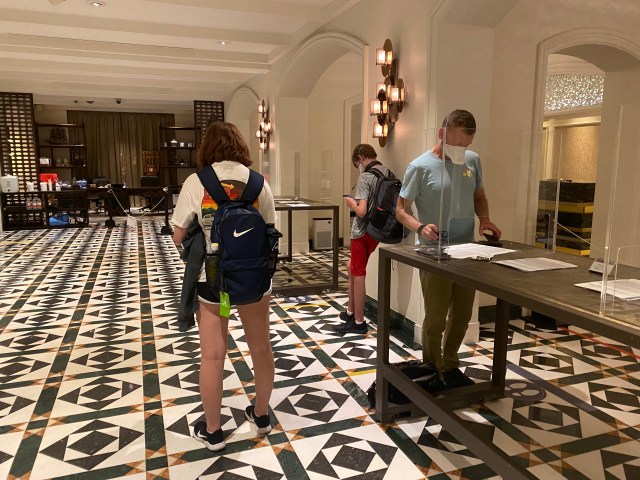 A quick gander at the InterContinental’s website shows that this is a fancy hotel indeed. It looks like an amazing place to stay in the Normal Times. Of course nothing is normal during covid. The hotel has completely converted to SHN stays only. So the doormen donned PPE instead of the elaborate uniforms featured on the website, and the lobby featured plexiglass barriers.