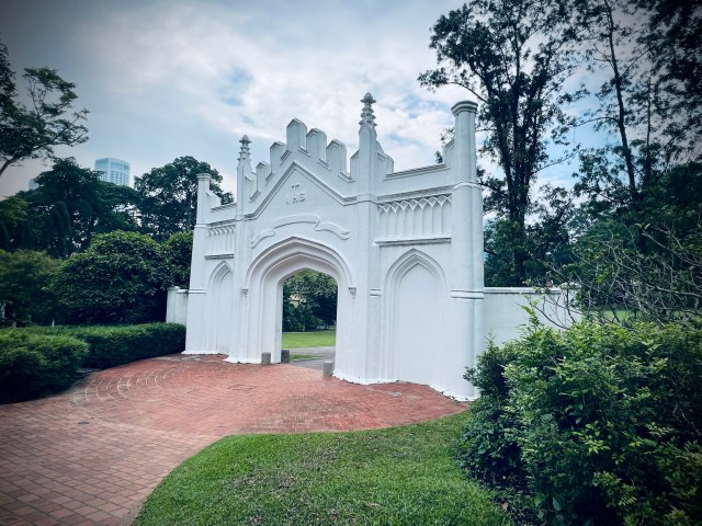 I’ll cover Singapore’s history in greater detail in future posts, but here are some basics for now: the British showed up in Singapore around 1819 while they were busy colonizing a solid chunk of Southeast Asia and trying to get ahead of the Dutch who were doing the same. Also–spoiler alert–there were people and cultures in Singapore before the Brits came along. The park includes exhibits, structures, and gardens that illustrate this varied history. The park’s other names reflect this history: Government Hill and Bukit Larangan (Forbidden Hill in Malay).