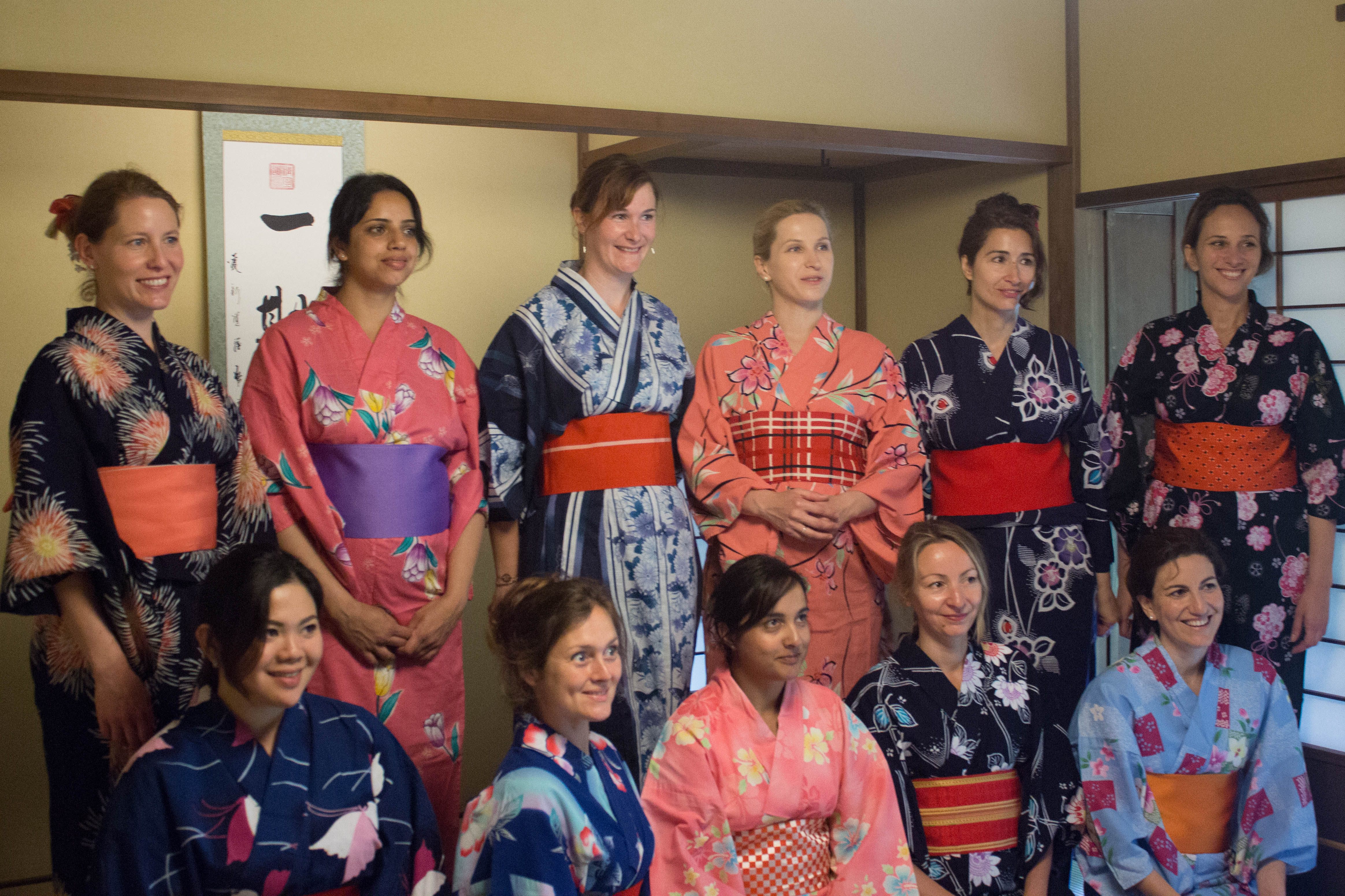 And yesterday I got to see Karol! Karol and I arrived in Yokohama at the same time in 2015, and our friends and activities overlapped a lot over our four years there since our kids were in the same school–and because, well, we’re both pretty awesome. Karol and I swung wooden swords at each other during aikido. I worked under her valiant leadership in the Filipino booth at the school’s International Food Fair. We went on excursions together like visits to a tea house while dressing up in yukata, the lighter-weight, summer version of kimono. And we said our farewells together to departing friends at sayonara parties.