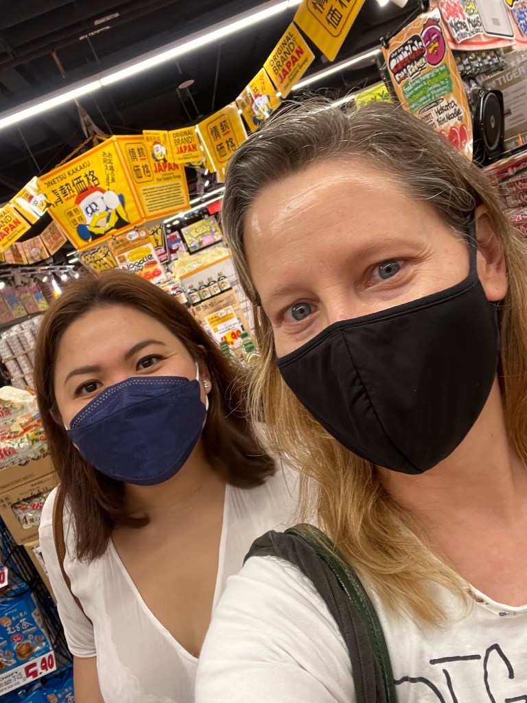 After lunch we did some Japanese ingredient shopping at Singapore’s version of the Japanese everything store Don Qijote, called Don Don Donki in Singapore. After annoying the salesmen with repeated questions about products that they didn’t stock–“Do you have kuromitsu? No? How about wakame?”–we hugged one more time, and snapped one final, totally contraband, no-mask wefie. And said a quick goodbye, until our next lunch.
