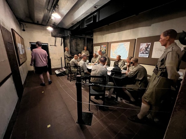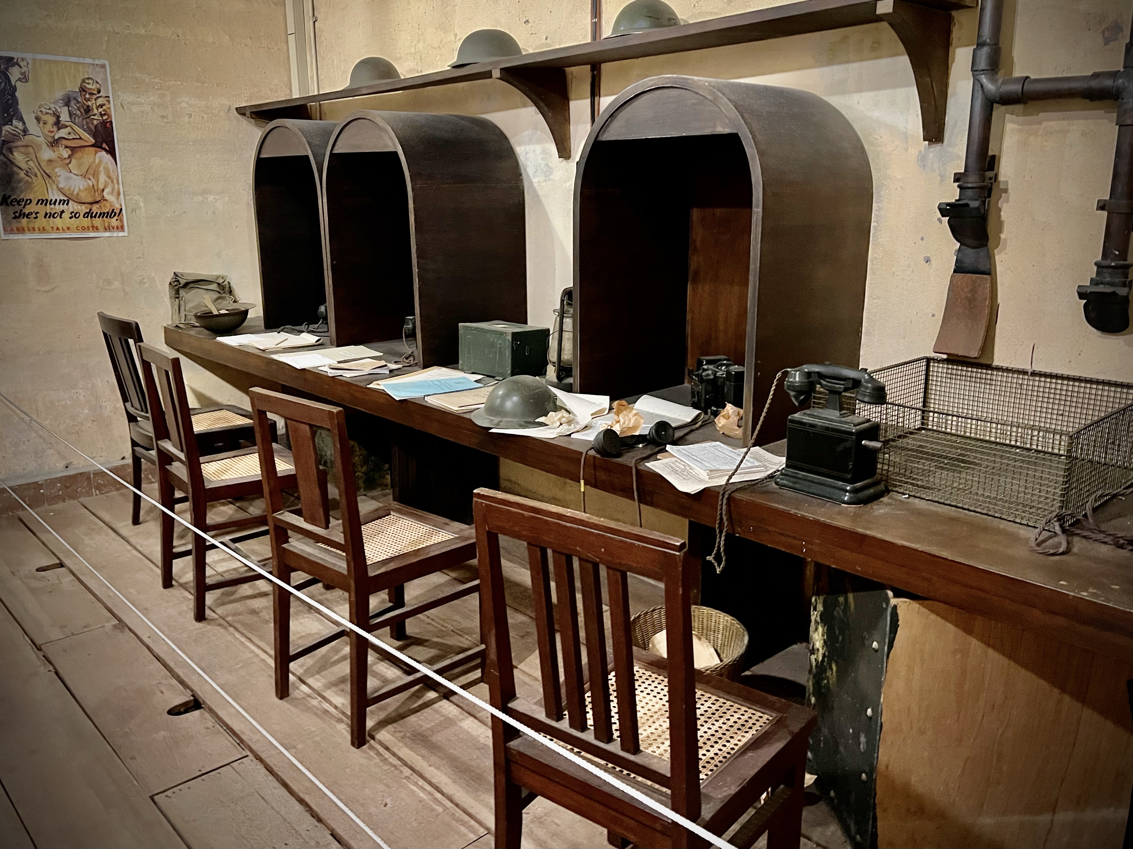 So we wandered the underground rooms and learned this history with the help of short films, displays, maps, period-specific furniture and comms equipment–and an eerie number of uniform-clad wax figures, a suspiciously large number with red (or ginger, as the Brits say) hair.