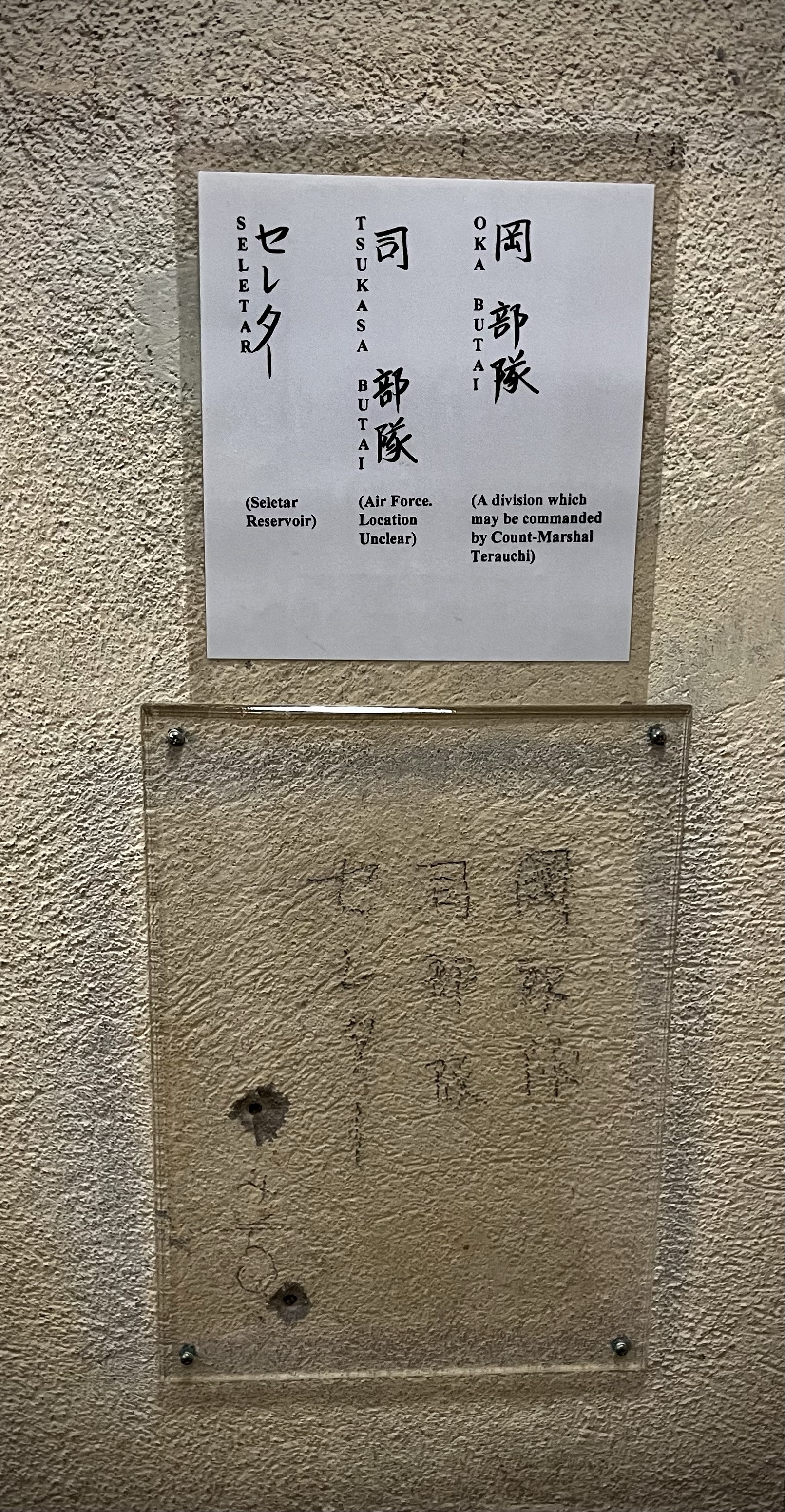 Preserved graffiti in Japanese reflects the continued use of the underground facility after invasion