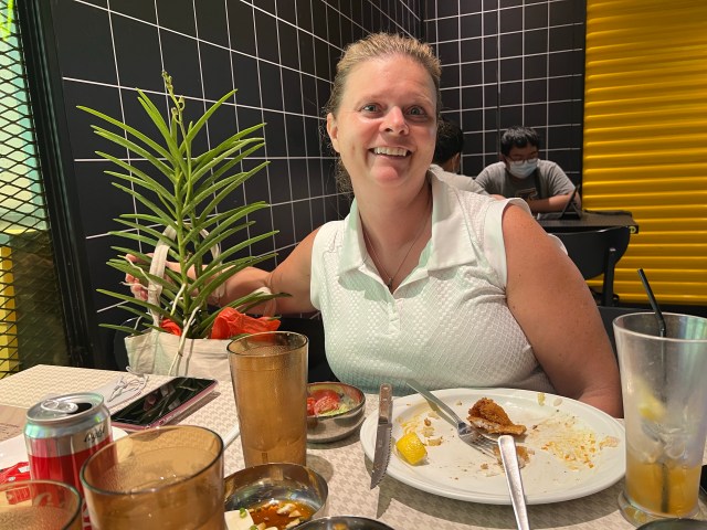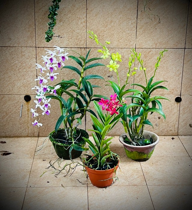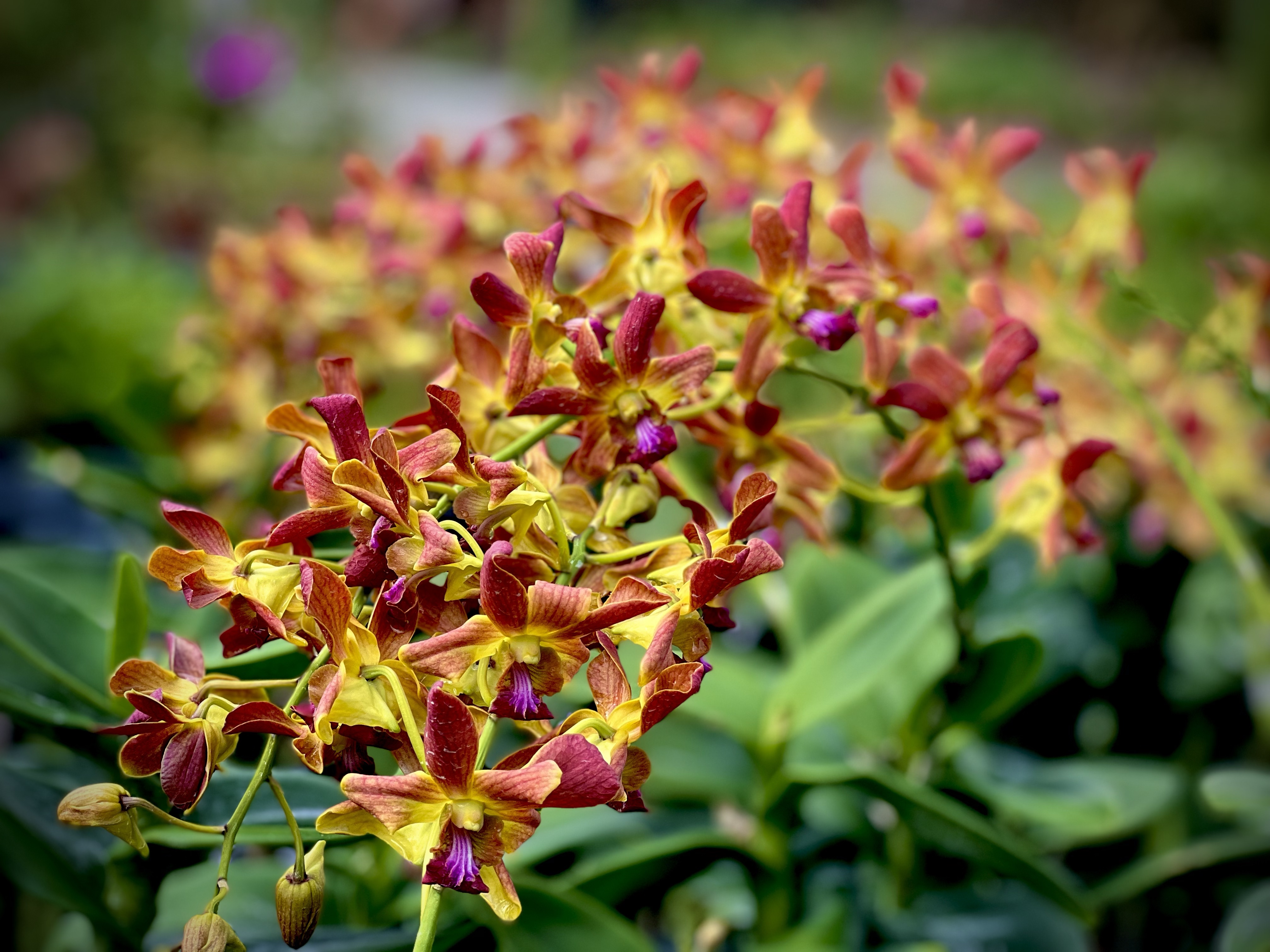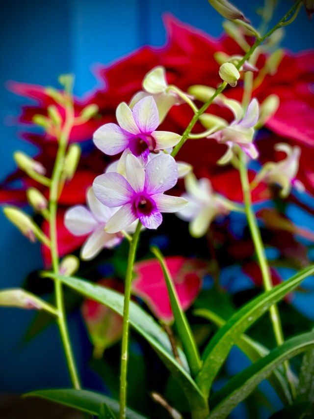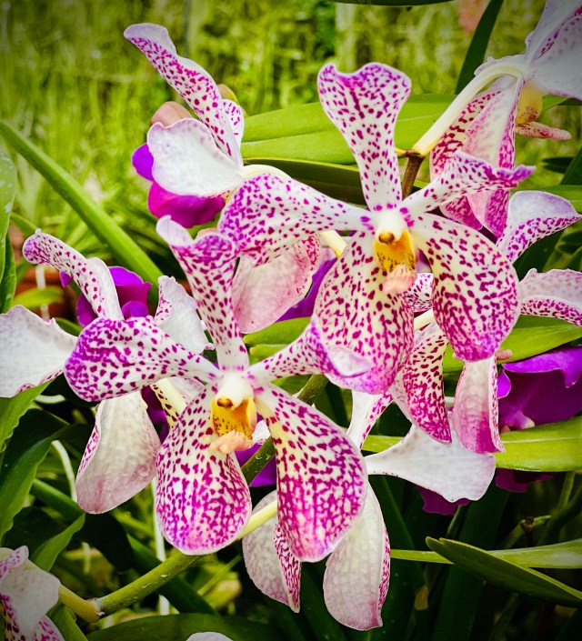 Karmen had great success growing orchids in the US and lamented the plants she had to give away when moving from Texas to Singapore. She marveled over the huge variety available versus the rather limited selection typically available in the US. And most importantly, she shared the simple way to water orchids: every two weeks fill a sink with water and soak the orchid for 15 minutes, then let it drain. That’s it.