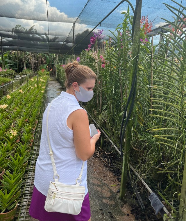 So once we were sprung from hotel jail and settled in, I asked Karmen about meeting in person, or IRL as the kids say (though they probably haven’t said that for at least five years now. Anyway!). After sharing soup dumplings one afternoon, Karmen asked if I was interested in joining her at an orchid farm that she heard about. I immediately said yes. And that’s how we found ourselves at Toh Garden a few days later.