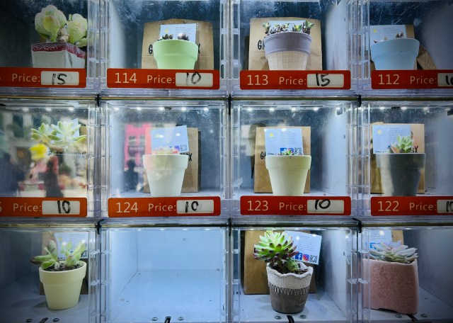 As we wandered I remembered a succulents vending machine and showed it to Tessa, knowing she would like it. She made her selection, and we headed home.
