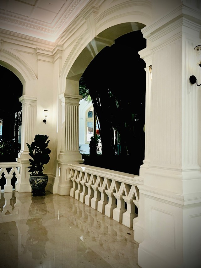 We wandered the arcade and peeked into the sumptuous lobby in all its colonial splendor, then headed home.