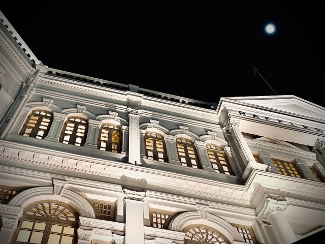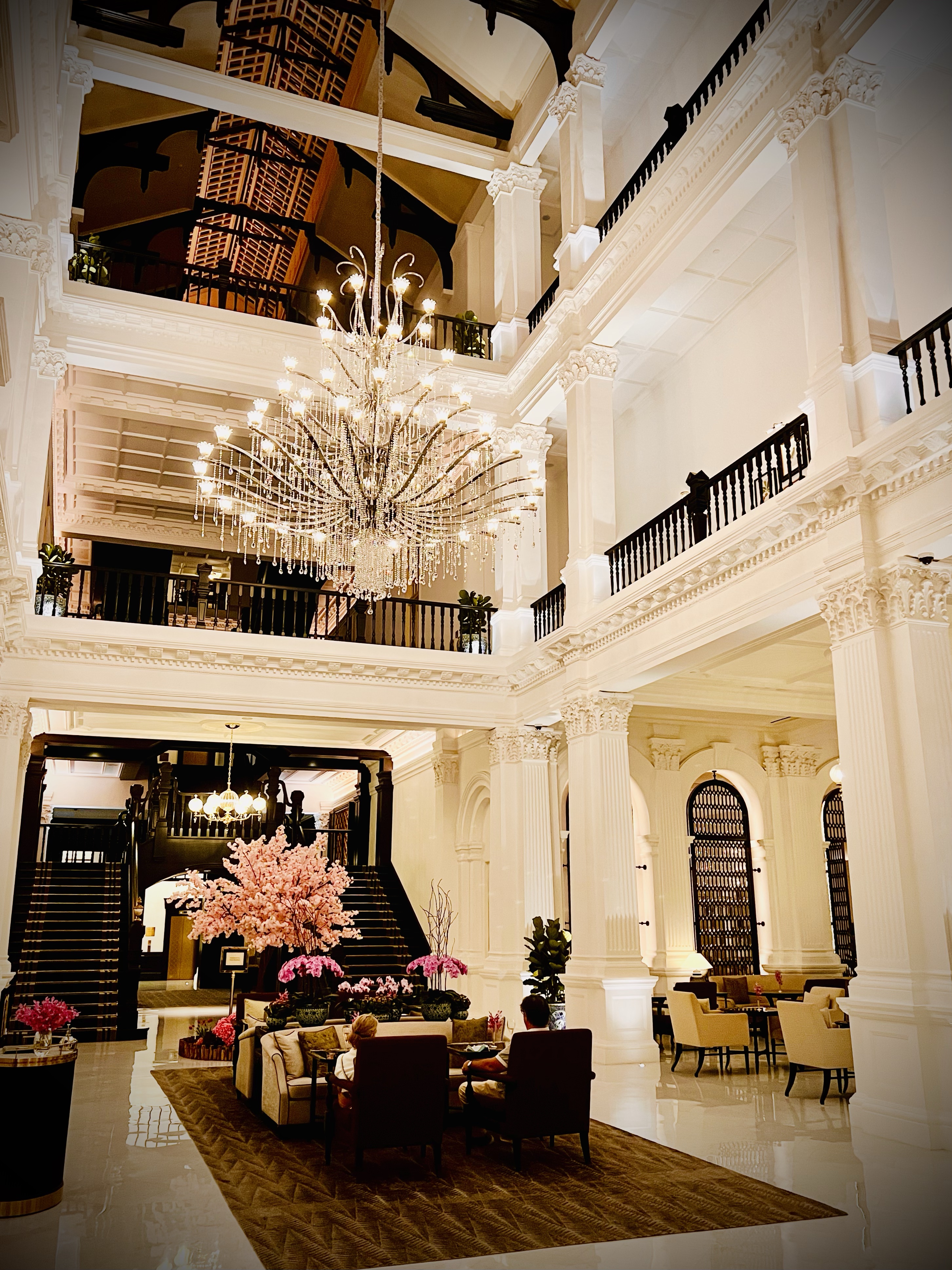 Last week we headed downtown for dinner, and we found ourselves near the storied Raffles Hotel. I asked that we pop in for a drink at the famous Long Bar, home of the Singapore Sling [cocktail]. The family agreed.