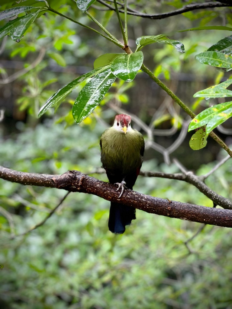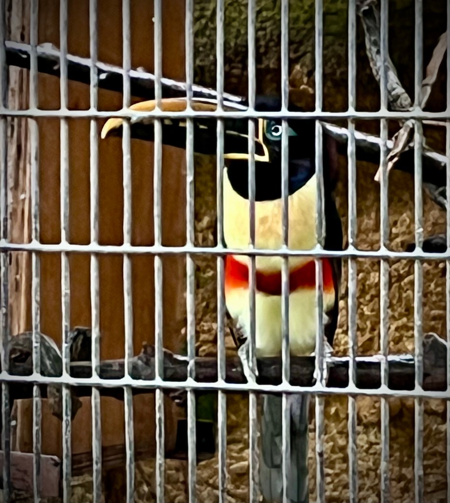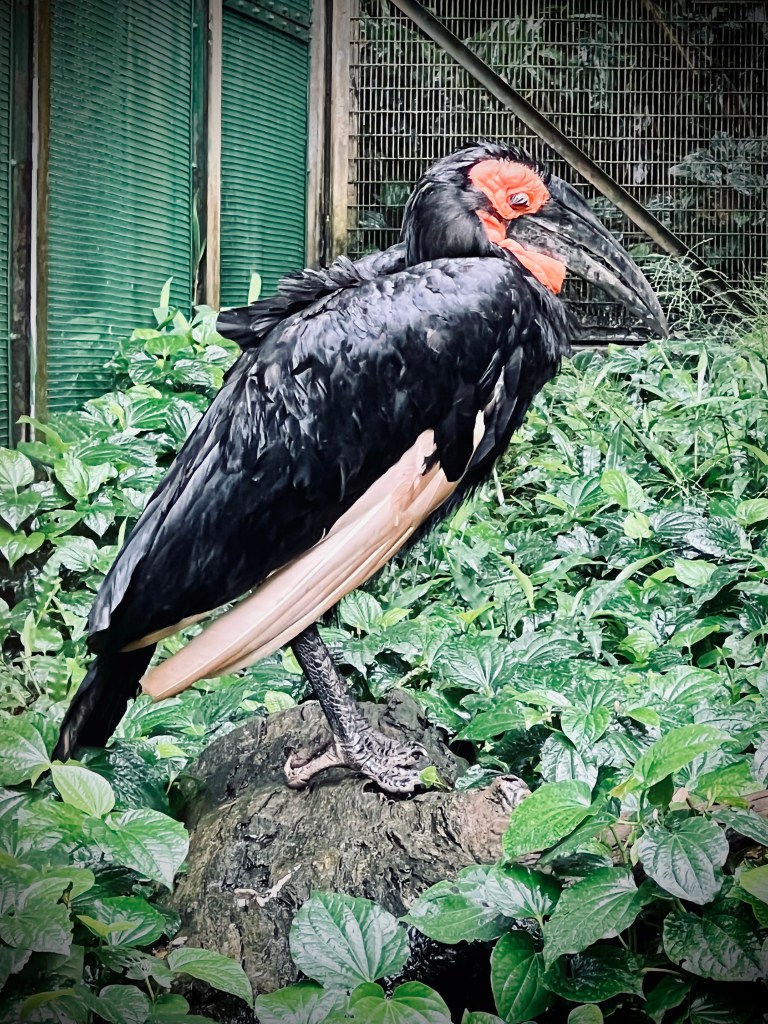 So we set off on the tram and started wandering the mostly-empty park. The enclosures and hillsides looked vaguely familiar from my visit many years ago, and I enjoyed roaming about, reading up on different birds, and doing my best to snap a few photos despite the iPhone’s insistence on focusing on the metal grates of the enclosures.