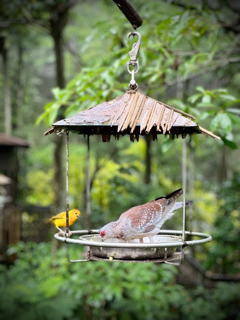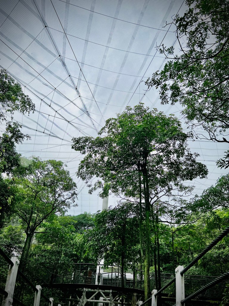 African Treetops was hands down our favorite section. After walking through a series of doors and heavy beaded curtains, we emerged into a network of catwalks and gently swinging rope bridges to watch birds feed up close. The gentle rain and thin crowds made the birds’ singing echo even more loudly.