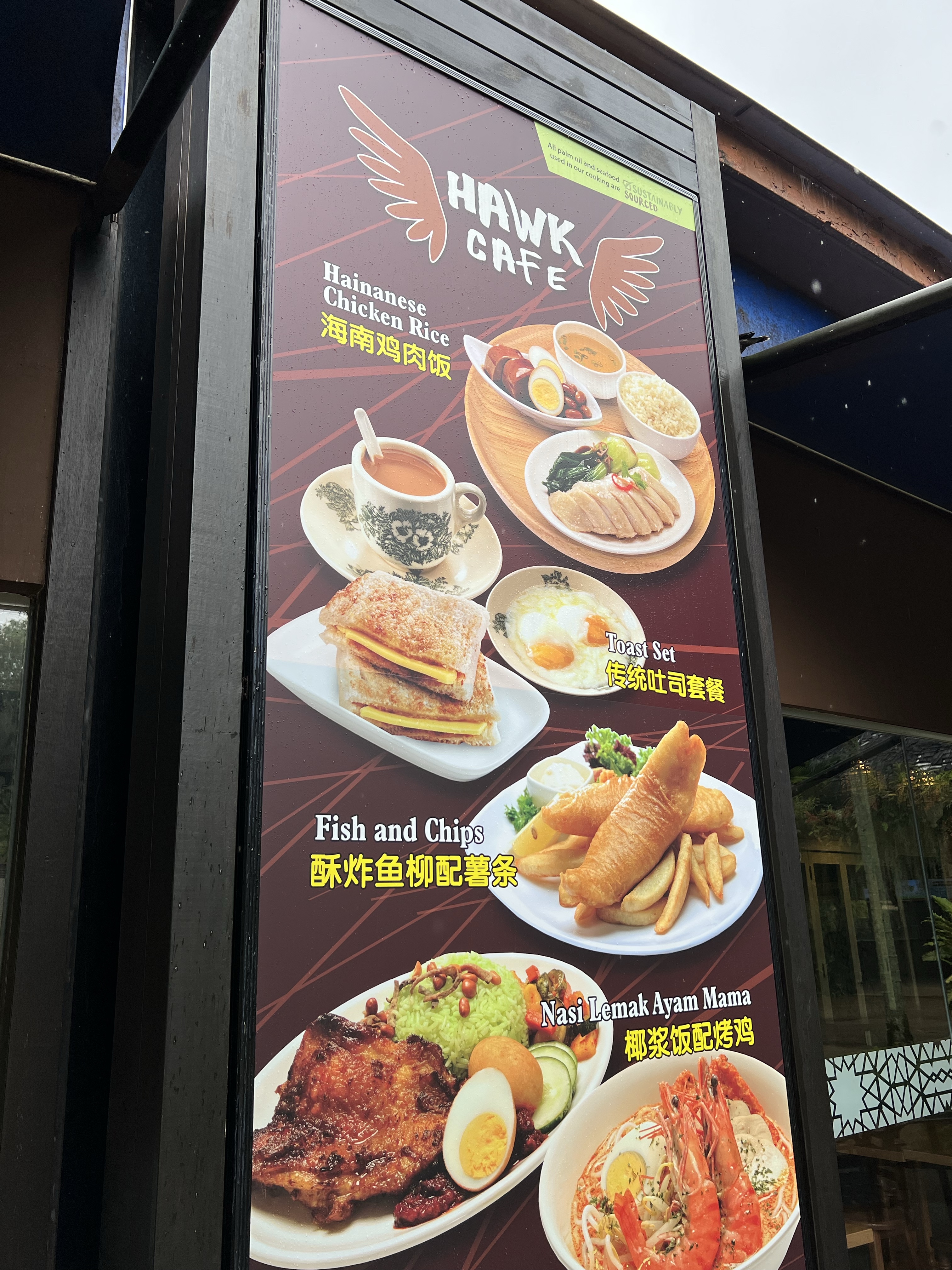 On our way out we noticed the cafe and wondered if they would serve…it….at a bird park. Yep.