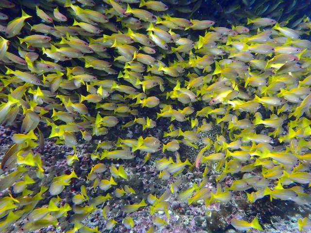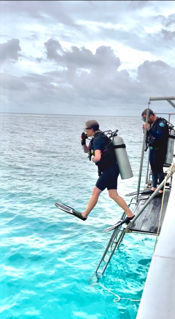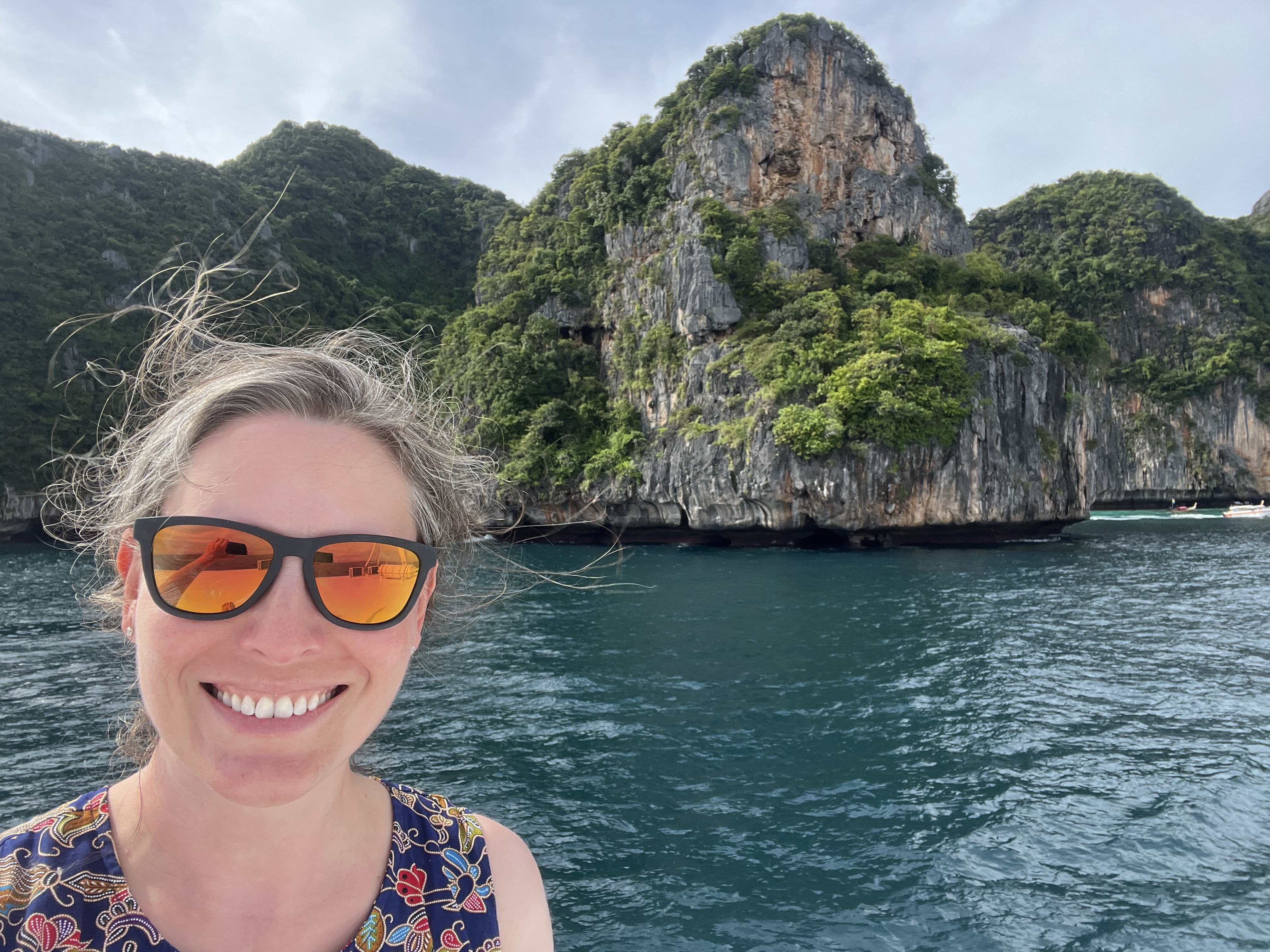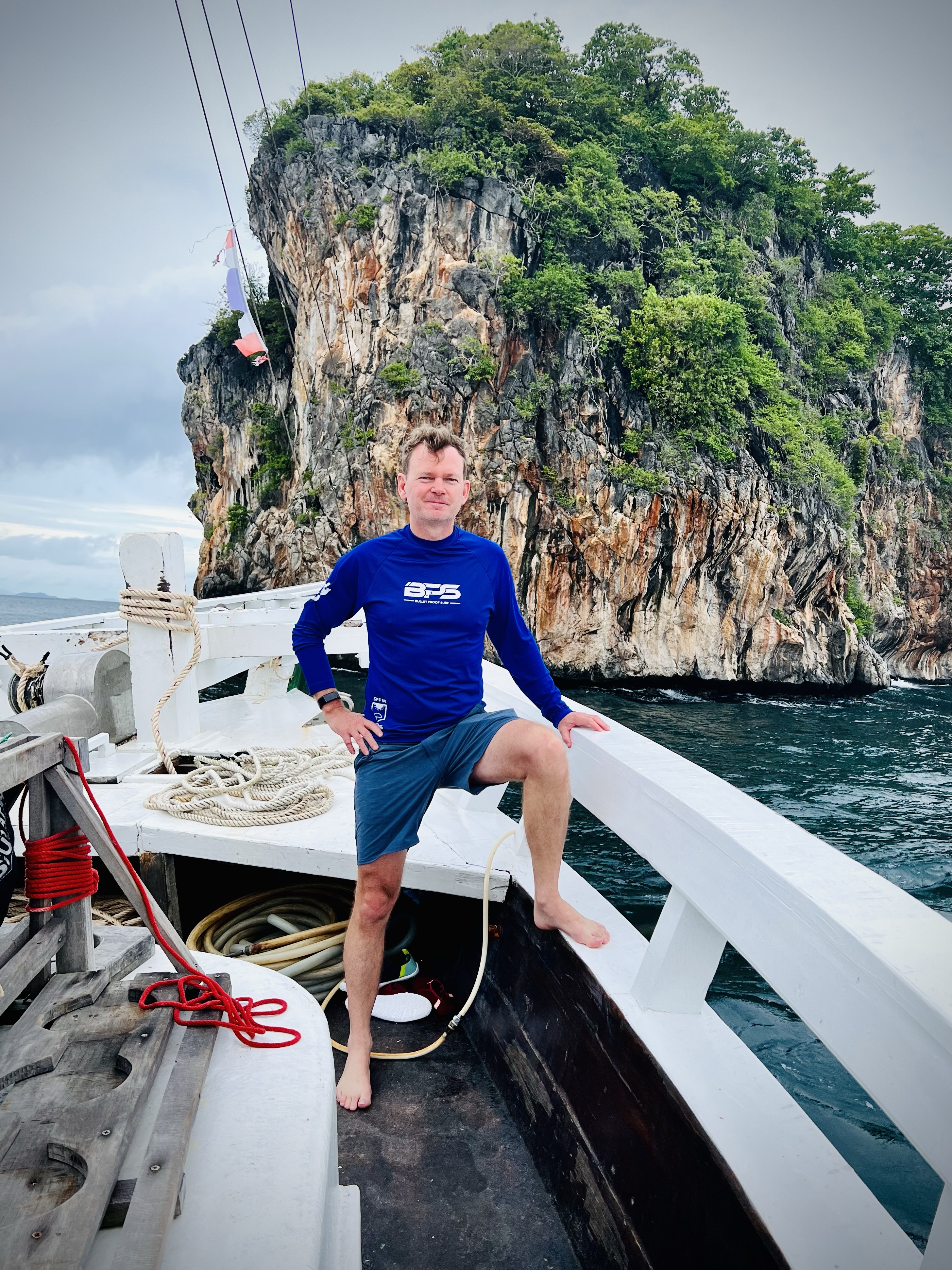 The weather cleared up by the end of day two, and we even started to see the sun peek out. Our divemaster Sharky pointed out Maya Bay on Phi Phi Ley, the island that was the filming location of the 2000 Leonardo DiCaprio film The Beach. I remember hearing about the huge number of tourists that flocked to that island after the film came out and the environmental devastation that the crowds brought. The crowds, boat traffic, and trash left behind were bad enough, and Sharky said that coral in the bay was largely killed off by the chemical sunscreen leaching from the visiting, swimming masses.